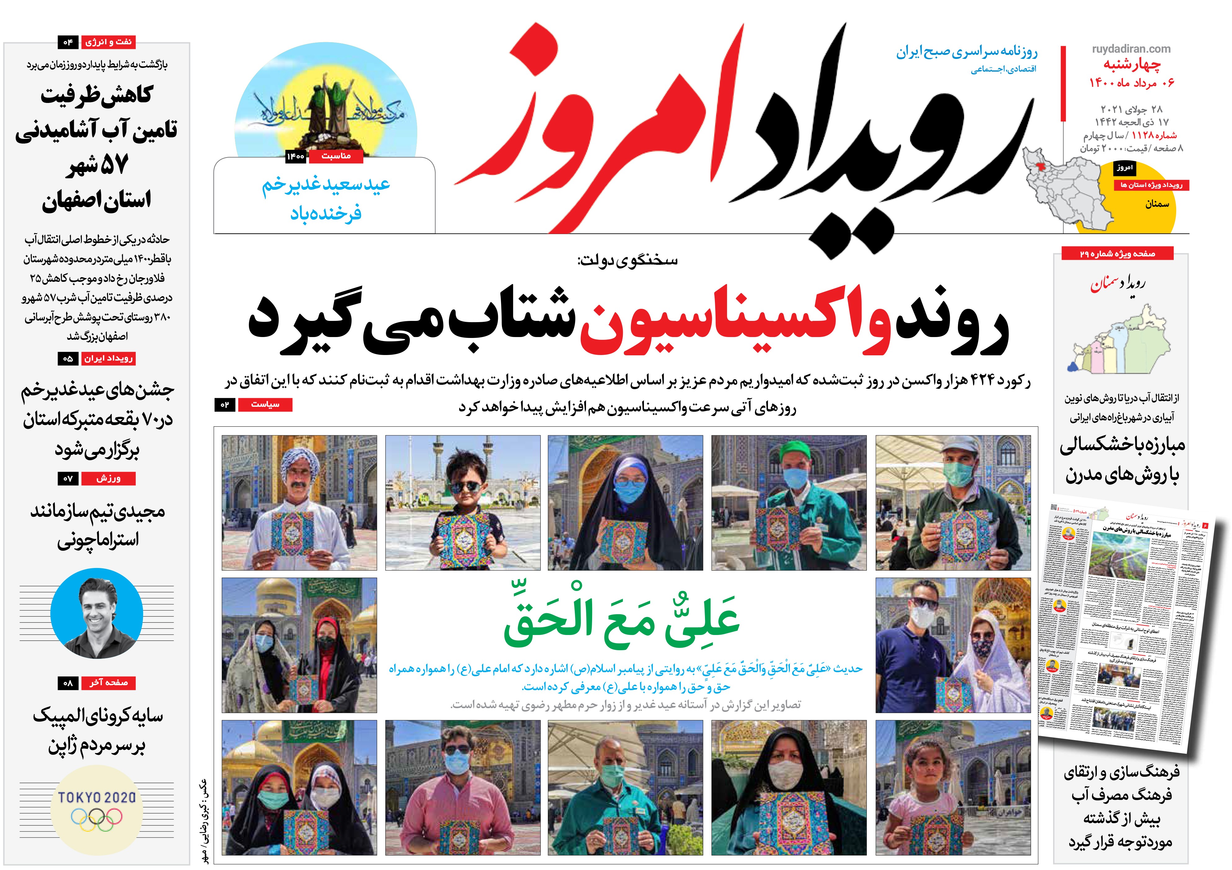 روزنامه رویداد امروز چهارشنبه ۶ مرداد ۱۴۰۰