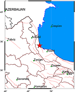 موقعيت مركز زلزله: ۳۷.۷۲ شمالي و ۴۸.۹۸ شرقي