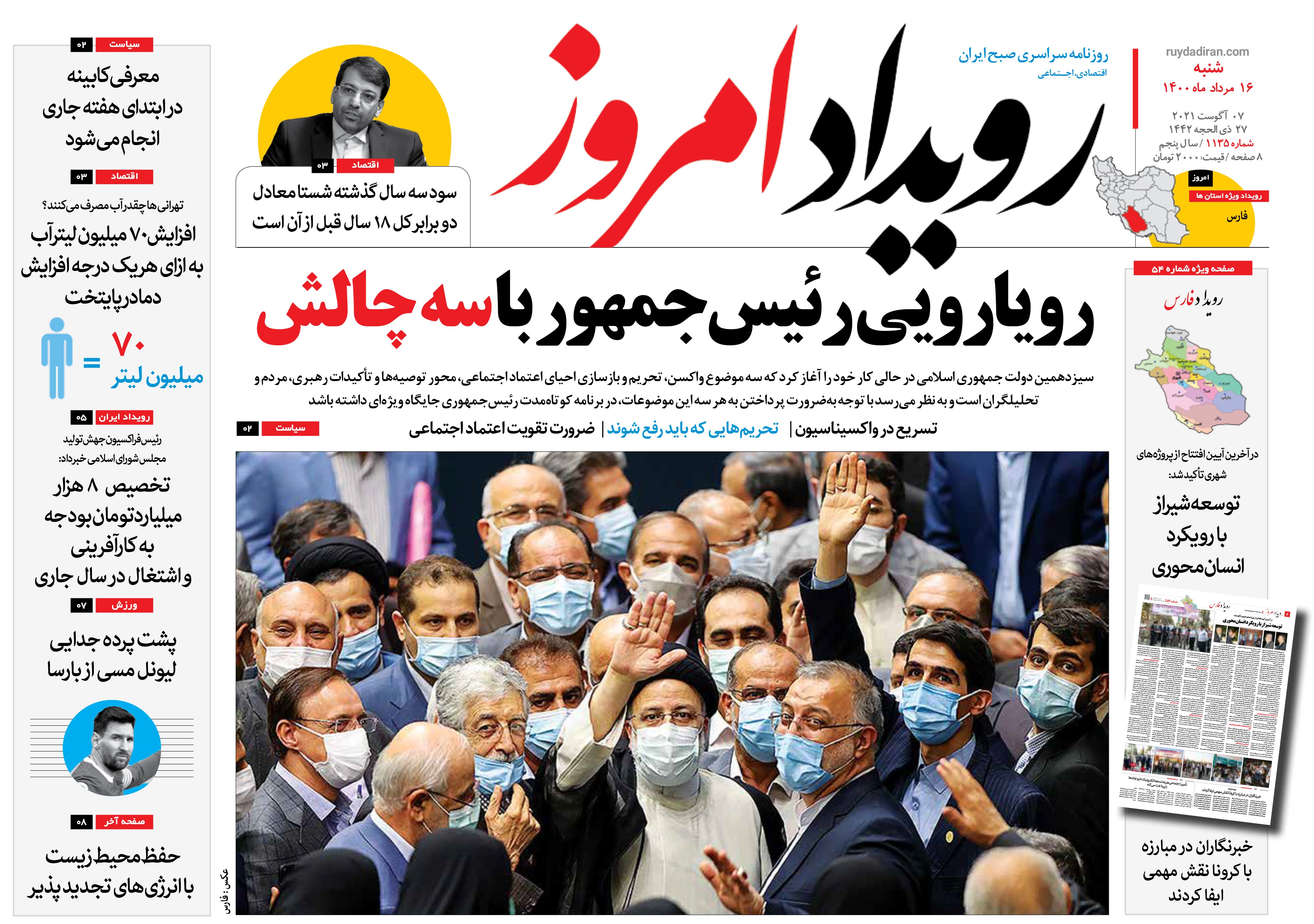 روزنامه رویداد امروز شنبه ۱۶ مرداد ۱۴۰۰