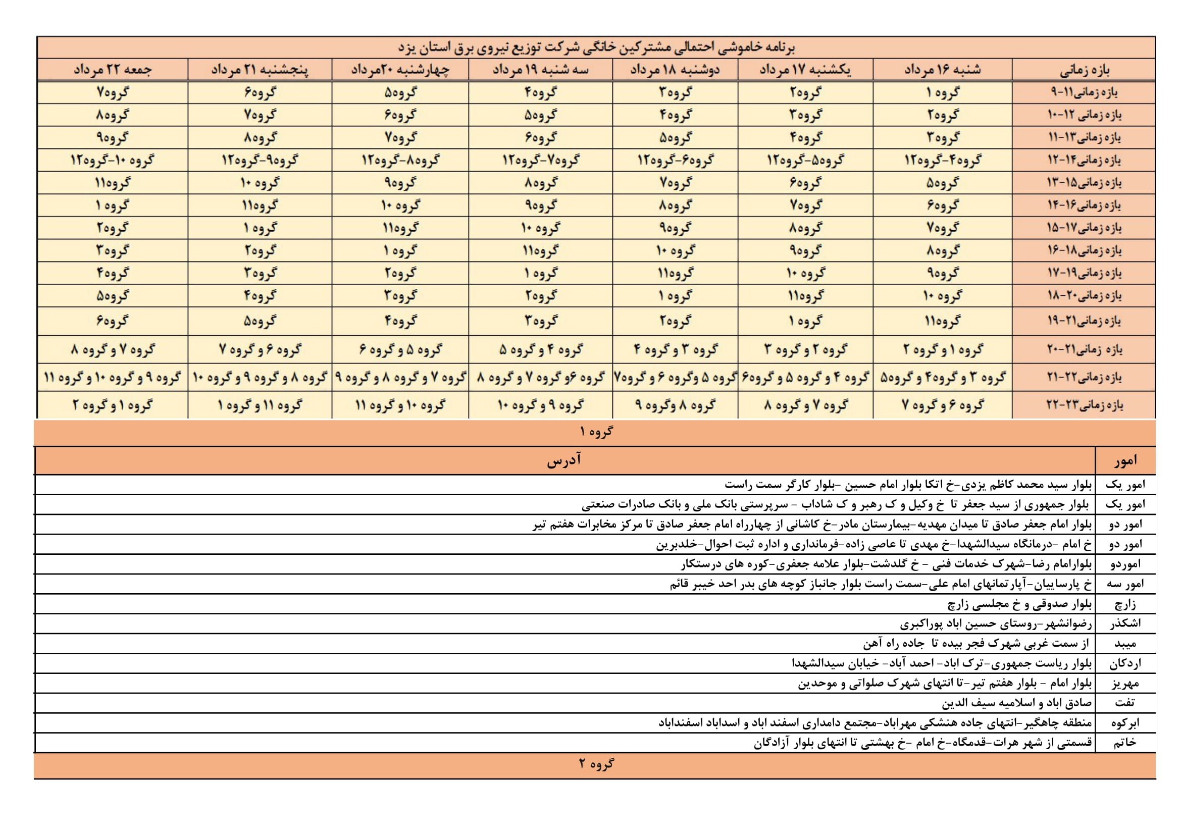 برنامه قطعی برق یزد پنجشنبه 21 مرداد 1400