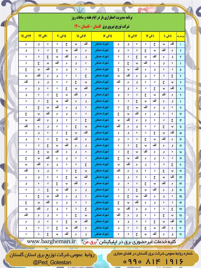 برنامه قطعی برق گلستان چهارشنبه3 شهریور  1400