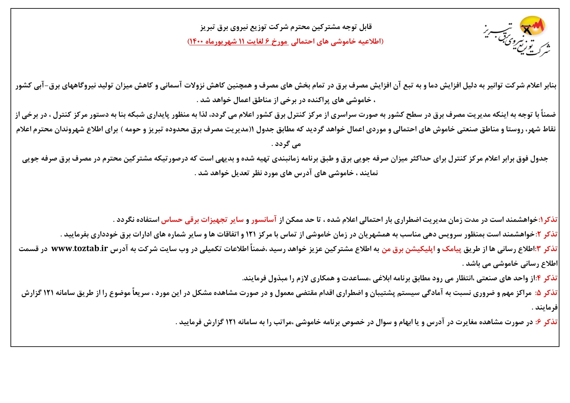 کد: 86380 | 07 شهریور 1400 ساعت 09:49 برنامه قطعی برق تبریز دوشنبه 8 شهریور 1400 برنامه قطعی برق تبریز دوشنبه 8 شهریور 1400 برای اطلاع از آخرین برنامه قطعی برق در کشور کلیک کنید قطعی برق کشور قطعی برق اشتراک گذاری گزارش خطا × اشتراک گذاری مطلب: برنامه قطعی برق تبریز دوشنبه 8 شهریور 1400 فیسبوک اینستاگرام تلگرام ایکس (توییتر) ایتا بله روبیکا × گزارش خطا برای گزارش خطا با پست الکترونیکی: ruydadiran[at]gmail.com در ارتباط باشید