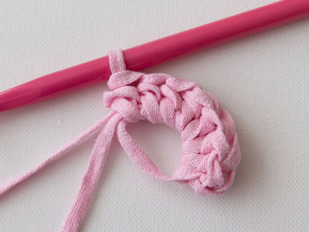 برای آغاز، 6 دانه بافت ساده بزنید و در آخر زنجیر اول را به آخر وصل کنید. دقت کنید در هر دانه از 6 دانه بافت، باید 2 پایه بزنید یعنی اینکه که هر دانه را دو بار ببافید و درمجموع تعداد دانههای بافت به 12 دانه می رسد. اگر بخواهید سبد بزرگتر باشد، دانههای بیشتری ببافید.