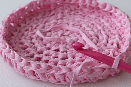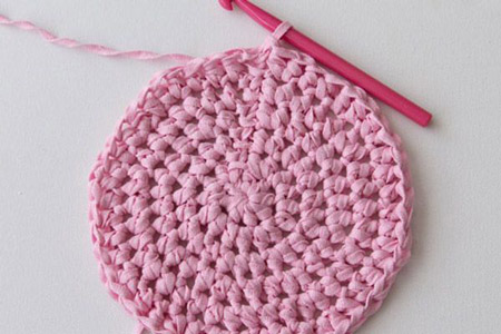 بافت سبد را با ۳۰ دانه بافت ادامه دهید. تا این قسمت بافت کف سبدتان کامل شده است و اکنون باید بافت دیواره سبد را آغاز کنید.