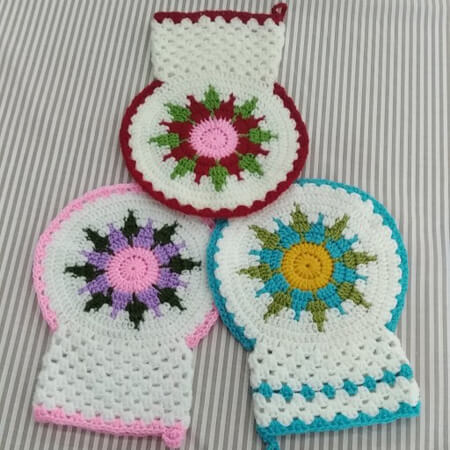 پس از زدن زنجیره های مورد نظر، زنجیره ی آخر را به زنجیره ی ابتدایی متصل کنید تا به شکل دایره شود. سپس از داخل آن پایه بلند و یا پایه کوتاه بزنید، این به سلیقه ی شما بستگی دارد. این کار را ادامه بدهید تا دور زنجیره با پایه های مورد نظر پر شود.