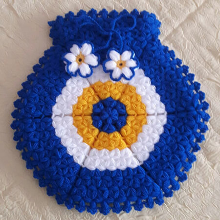با این شیوه تعداد دانه ها کاهش می یابد. سپس 8 رج کاهشی ببافید. و در پایان رج آن را به ابتدای رج وصل کنید و نخ را بچینید.