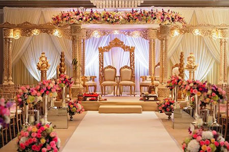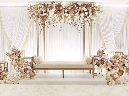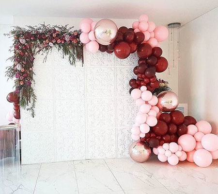 برای سالن و مجالس عقد و عروسی، استیج و جایگاه عروس و داماد را به روش های متفاوت تزیین می کنند. می توانید با بادکنک یا گل و ... تزیین کنید.