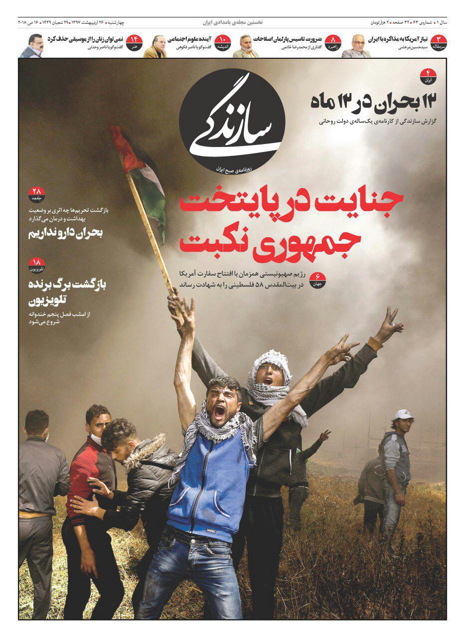 جنایت در پایتخت جمهوری نکبت ؛ تیتر یک روزنامه سازندگی چهارشنبه 26 اردیبهشت