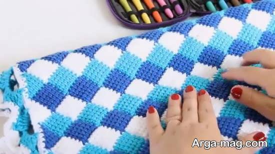 جهت بافت مدل شـطرنجی ابتدا قبل از هر کاری، باید اندازه مربع های خود را مشخص کنید، و دوم تعداد زنجیره ها است که متناسب با میل و نخ متفاوت می باشد.
