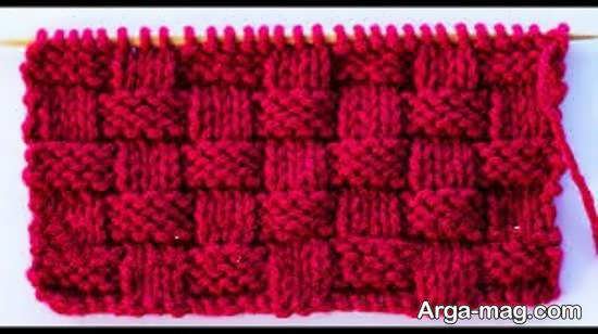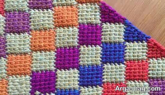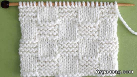 دوباره به همین شکل به بافتن ادامه می دهیم تا بلندی مربع های تازه نیز به ۳ سانتی متر برسد؛ و تا پایان بافت به همین صورت مکرر ادامه دارد.