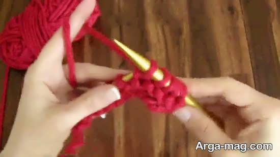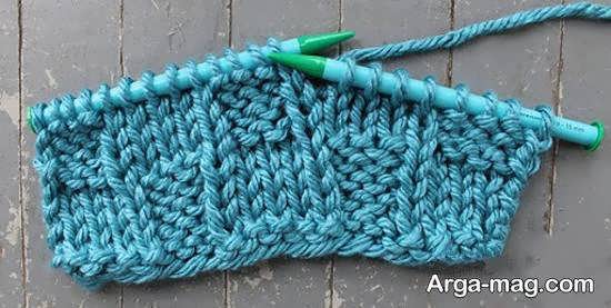 در ردیف دوم دانه های به زیر بافته را به رو ببافید و دانه های به رو بافته را به زیر ببافید و تا رسیدن بلندی مربع به ۳ ساعت ادامه دهید.