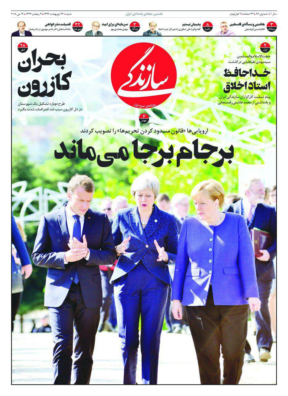 برجام برجا می ماند؛ تیتر یک روزنامه سازندگی شنبه 29 اردیبهشت