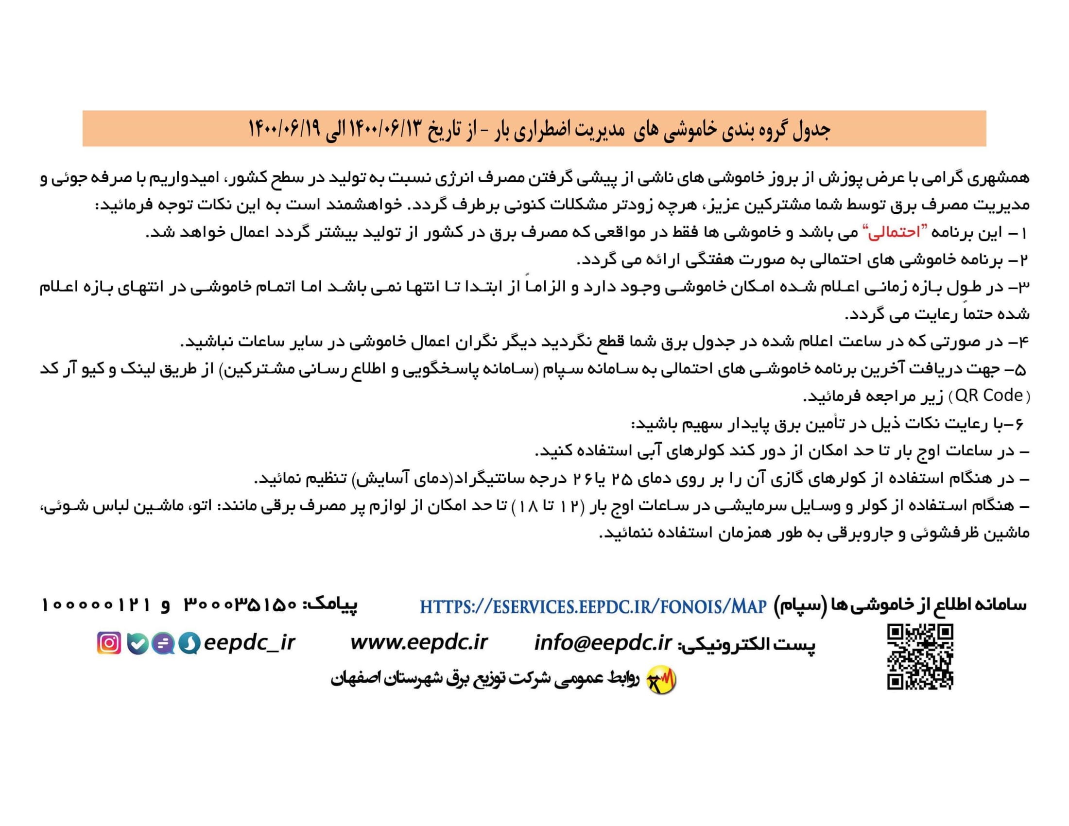 کد: 87997 | 16 شهریور 1400 ساعت 09:51 برنامه قطعی برق اصفهان چهارشنبه 17 شهریور 1400 برنامه قطعی برق اصفهان چهارشنبه 17 شهریور 1400 برای اطلاع از آخرین برنامه قطعی برق در کشور کلیک کنید اشتراک گذاری گزارش خطا × اشتراک گذاری مطلب: برنامه قطعی برق اصفهان چهارشنبه 17 شهریور 1400 فیسبوک اینستاگرام تلگرام ایکس (توییتر) ایتا بله روبیکا × گزارش خطا برای گزارش خطا با پست الکترونیکی: ruydadiran[at]gmail.com در ارتباط باشید