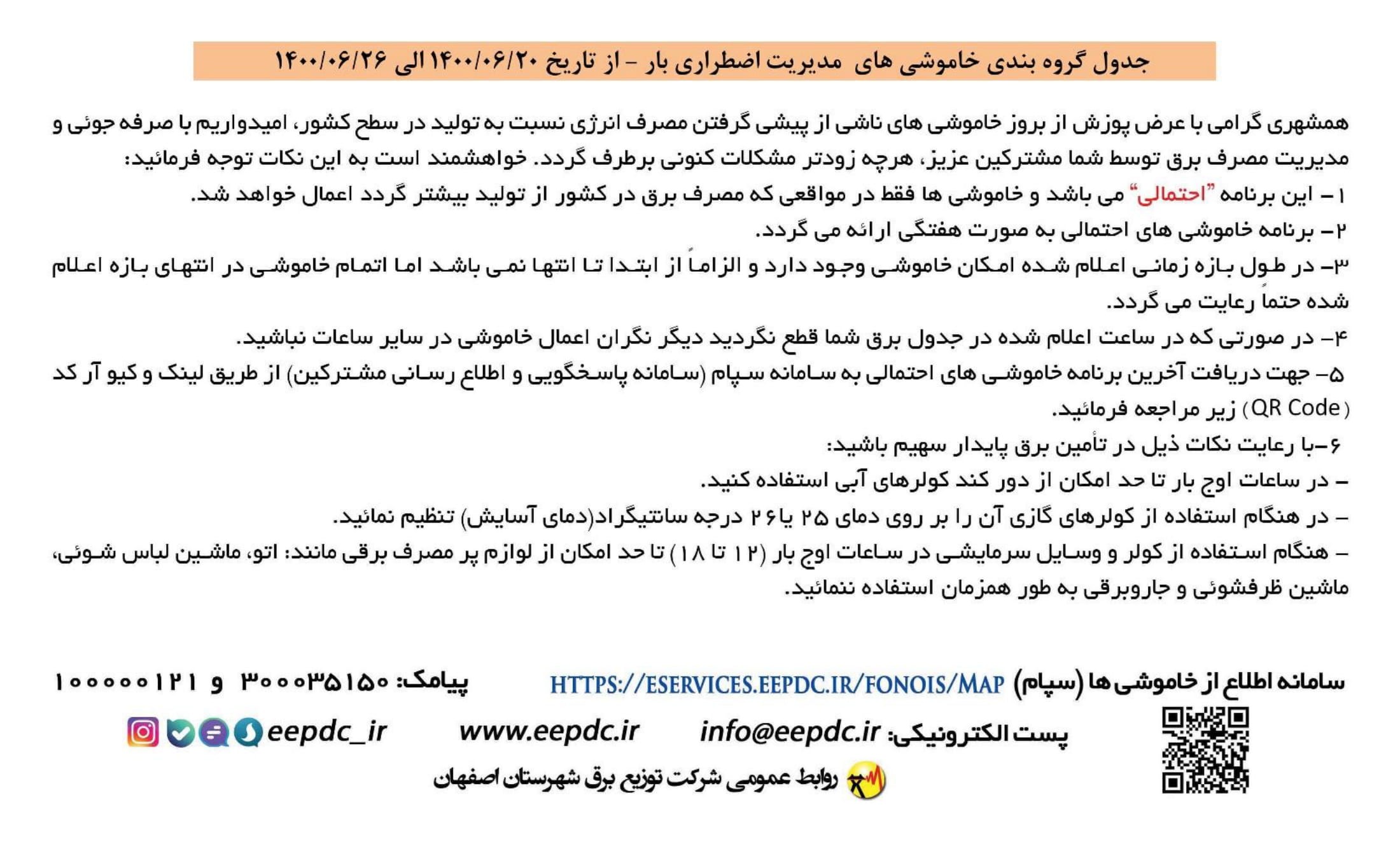 کد: 88565 | 20 شهریور 1400 ساعت 08:44 برنامه قطعی برق اصفهان شنبه 20 شهریور 1400 برنامه قطعی برق اصفهان شنبه 20 شهریور 1400 برای اطلاع از آخرین برنامه قطعی برق در کشور کلیک کنید اشتراک گذاری گزارش خطا × اشتراک گذاری مطلب: برنامه قطعی برق اصفهان شنبه 20 شهریور 1400 فیسبوک اینستاگرام تلگرام ایکس (توییتر) ایتا بله روبیکا × گزارش خطا برای گزارش خطا با پست الکترونیکی: ruydadiran[at]gmail.com در ارتباط باشید