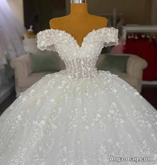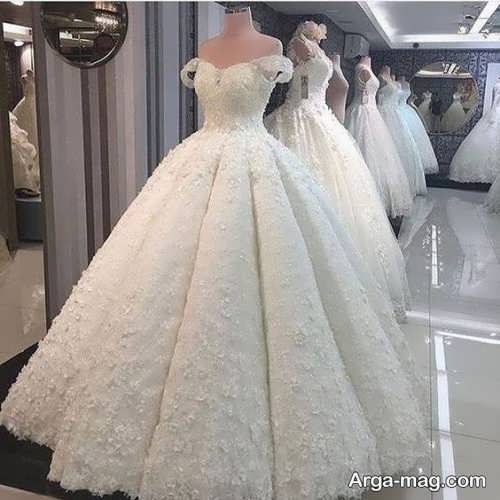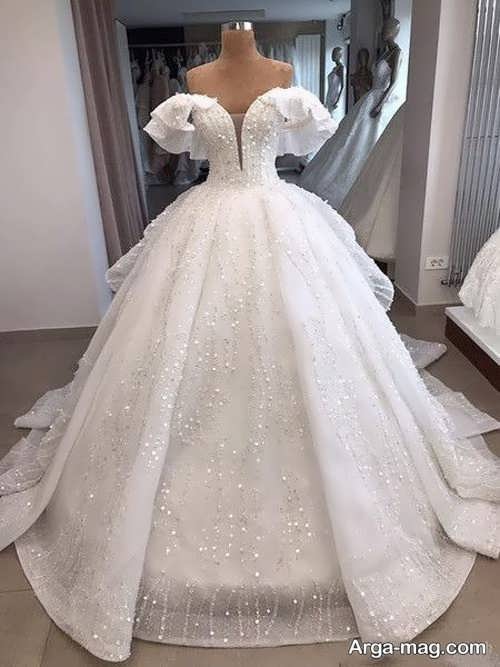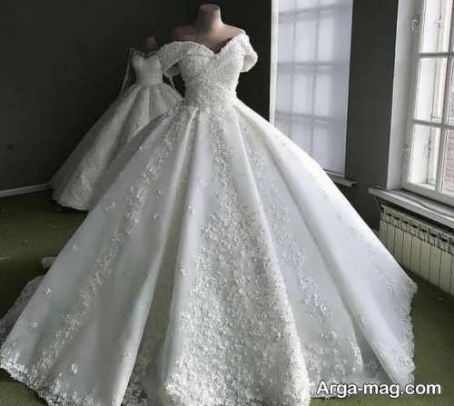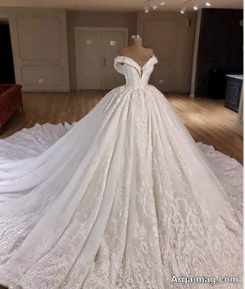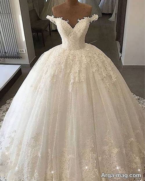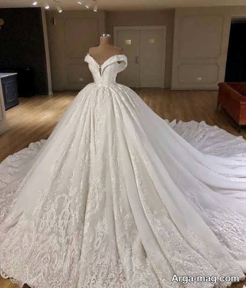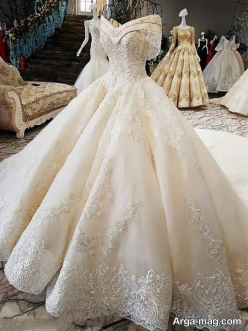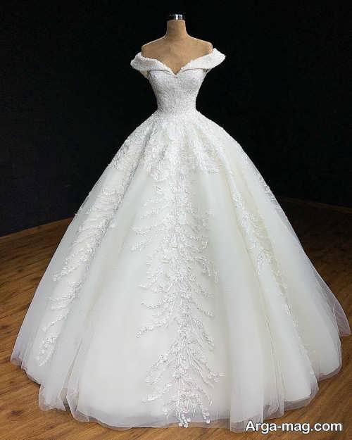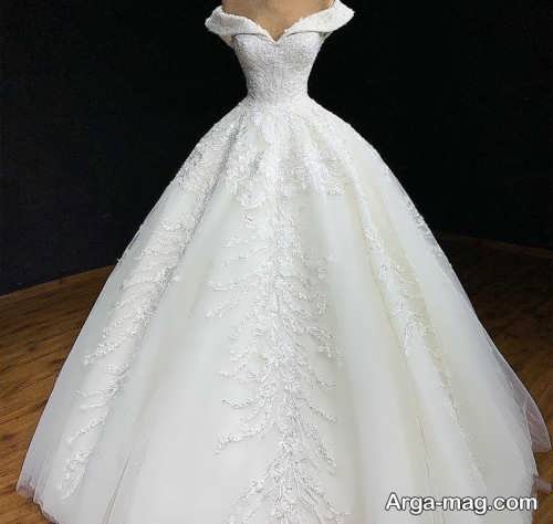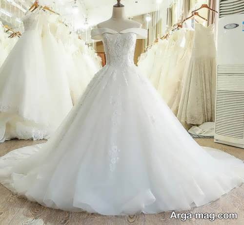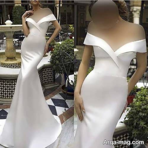 پیراهن نوعروس یقه قایقی با طرح های شیک و زیبا