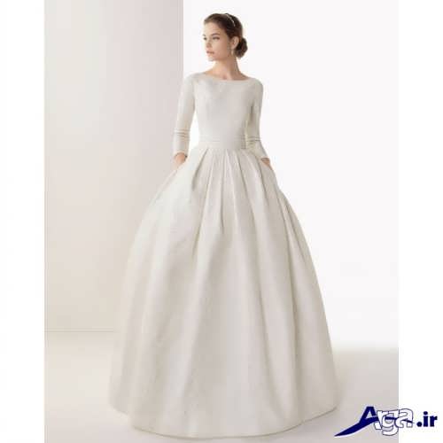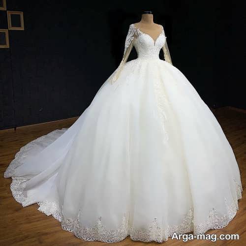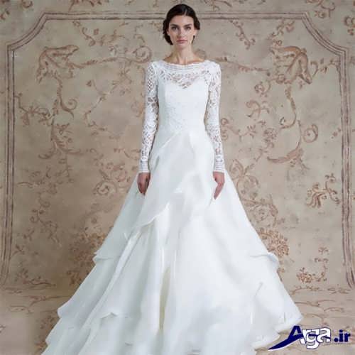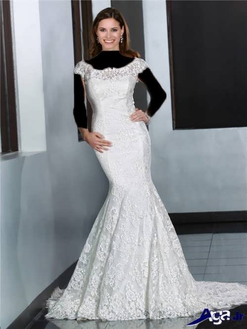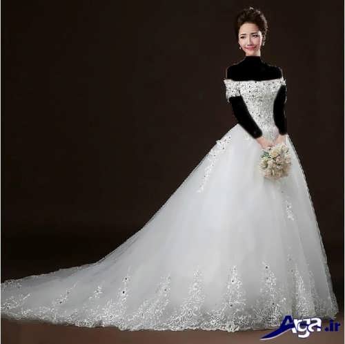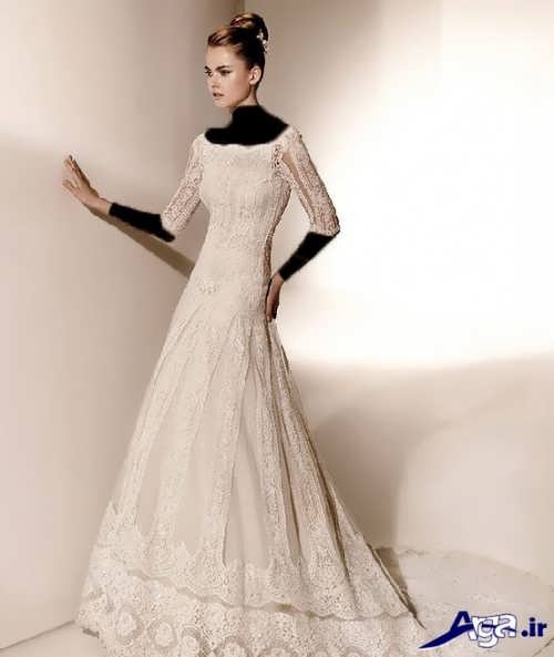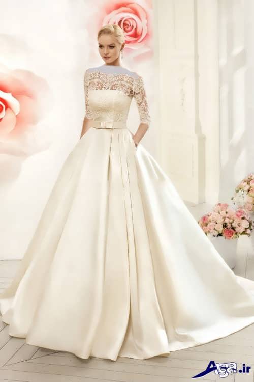 لباس عروس ها با یقه قایقی، همچنین دارای طرح های آستین دار نیز هستند که این مدل لباس عروس های آستین دار برای افرادی که تمایل دارند در جشن عروسی شان پوشیده تر به نظر برسند می توانند انتخاب ایده آل و مناسبی باشند.