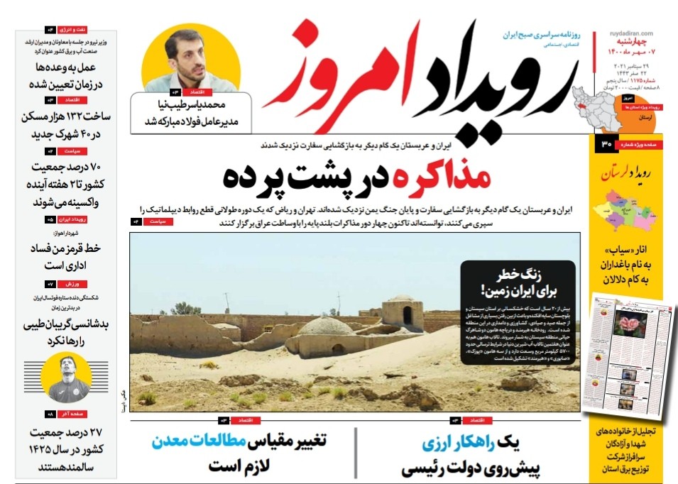 کد: 91162 | 07 مهر 1400 ساعت 02:04 روزنامه رویداد امروز چهارشنبه ۷ مهر ۱۴۰۰ روزنامه رویداد امروز رویداد ایران اشتراک گذاری گزارش خطا × اشتراک گذاری مطلب: روزنامه رویداد امروز چهارشنبه ۷ مهر ۱۴۰۰ فیسبوک اینستاگرام تلگرام ایکس (توییتر) ایتا بله روبیکا × گزارش خطا برای گزارش خطا با پست الکترونیکی: ruydadiran[at]gmail.com در ارتباط باشید