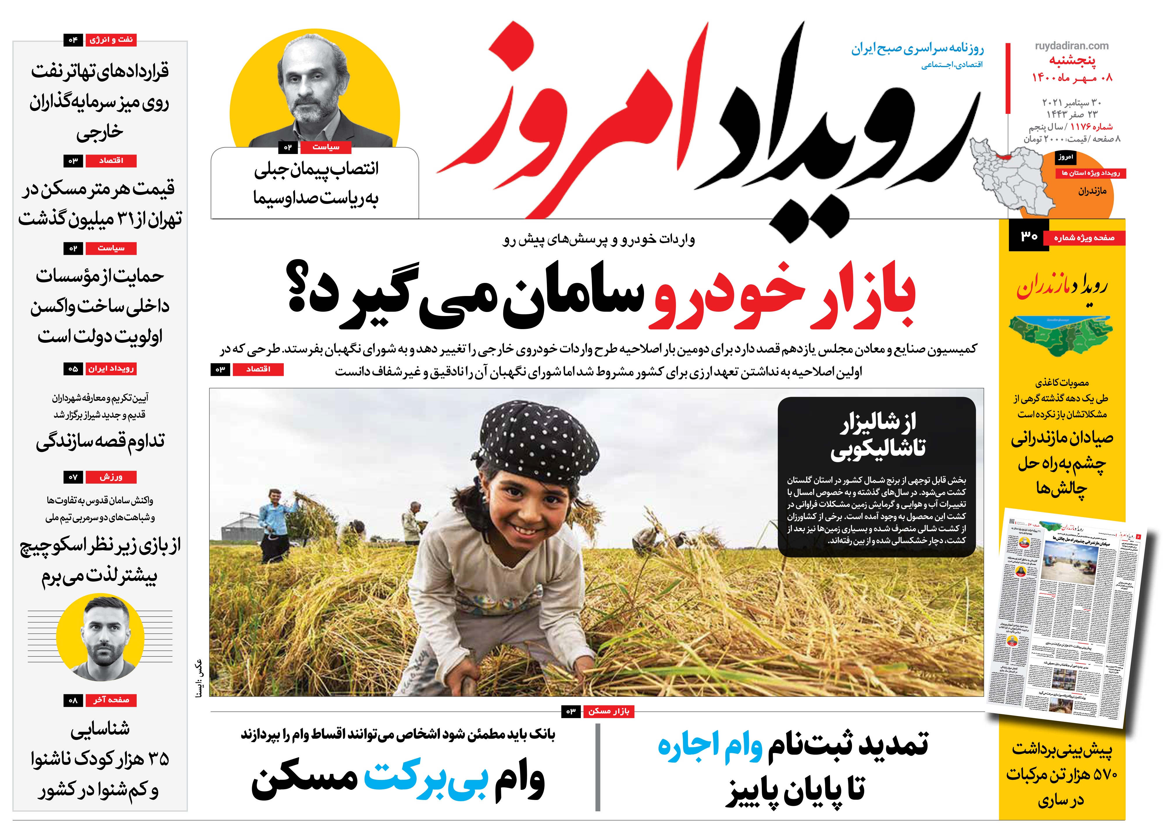 روزنامه رویداد امروز پنج شنبه ۸ مهر ۱۴۰۰