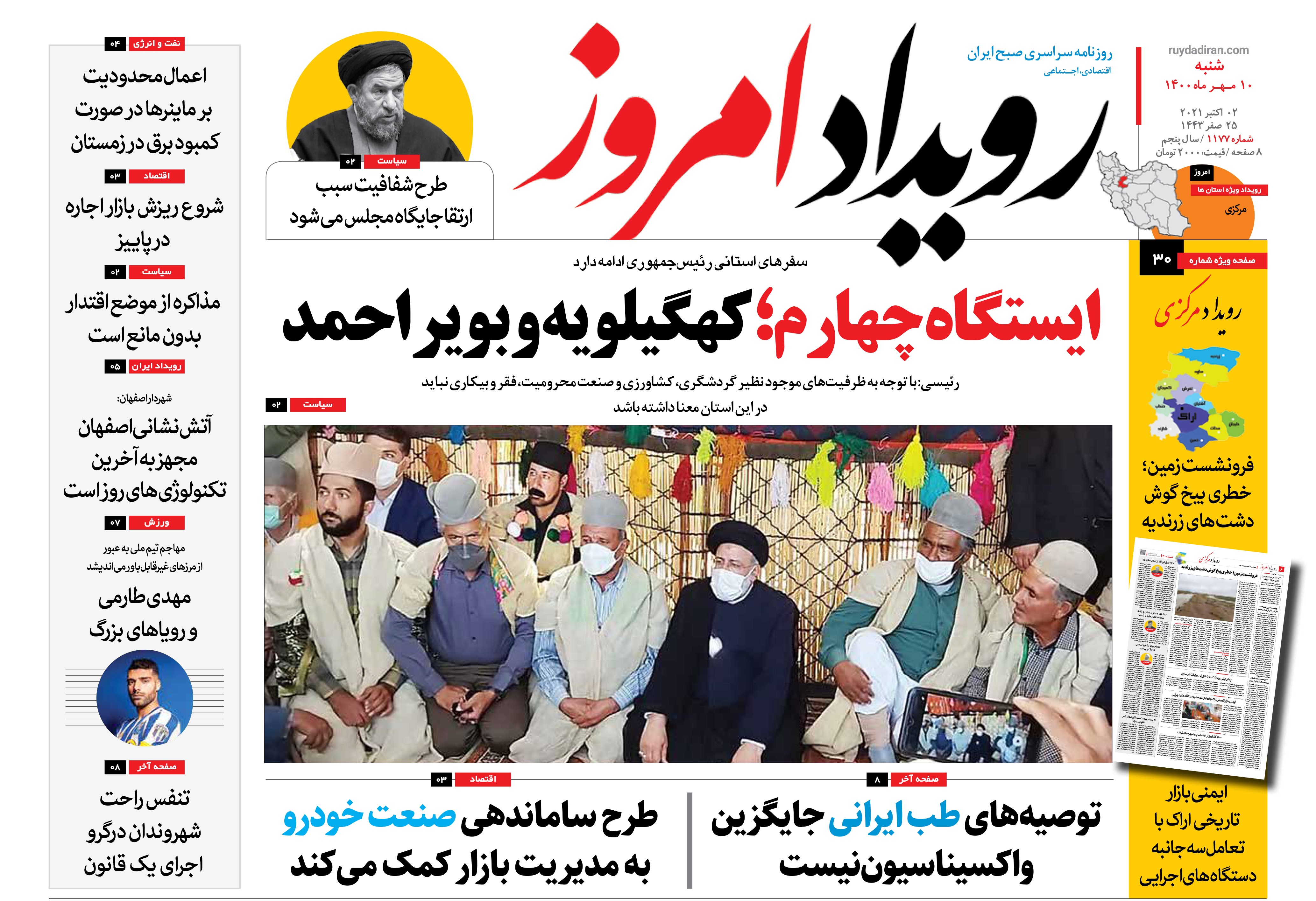 روزنامه رویداد امروز شنبه ۱۰ مهر ۱۴۰۰