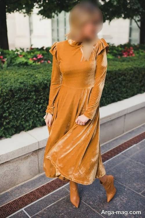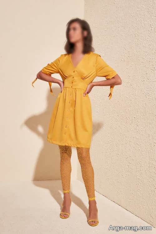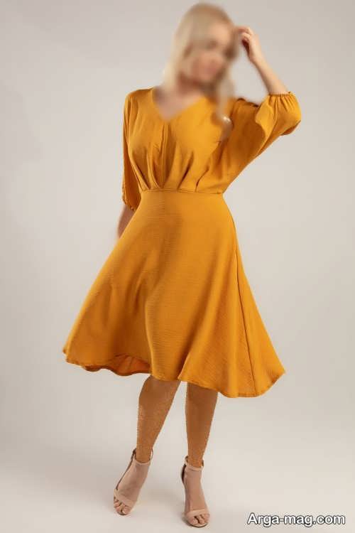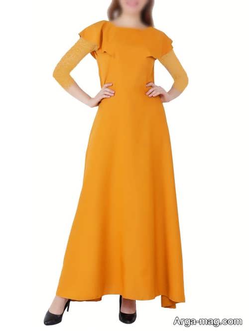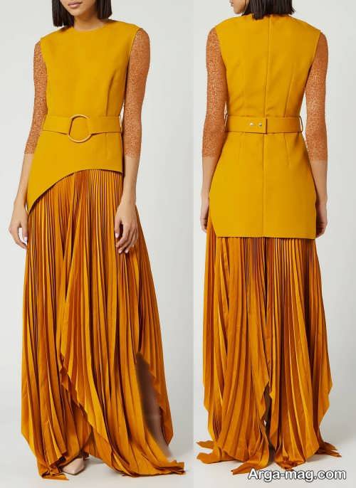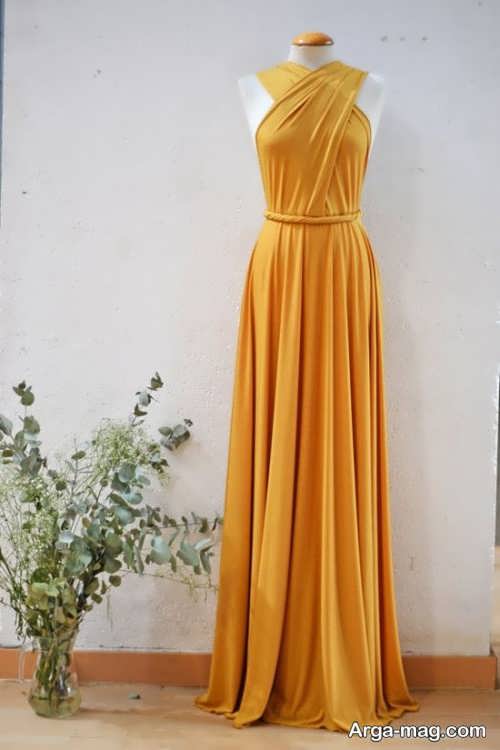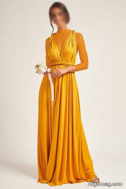 مدل های لباس مجلسی خردلی کوتاه و بلند