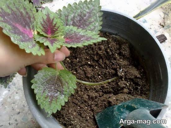 - در زمان انتقال مراقب باشید ریشههای گیاه آسیب نبیند. همچنین لازم است حداقل پایینترین گره بدون برگ شاخه را بپوشاند. خاک را داخل گودال بریزید و آن را پر کنید.