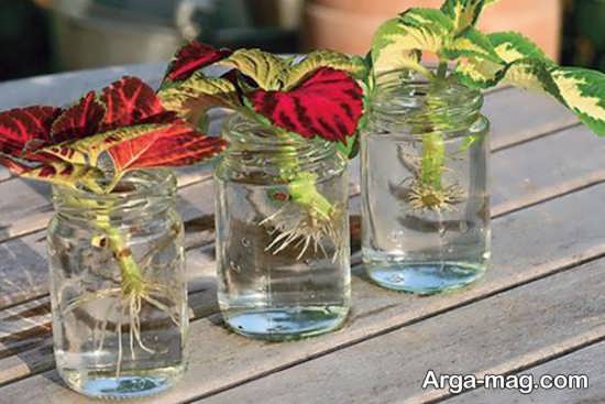 یکی دیگر از روش های معمول قلمه زدن حسن یوسف در آب است، ریشه این گیاه به آسانی در آب رشد می کند و میتوانید پس از ریشه دار شدن، قلمه ها را به گلدانهای مناسب انتقال دهید بنابر این پس از این که از گیاه حسن یوسف بالغ و سالم طبق مراحلی که در بالا اشاره شد، قلمه گرفتید، آنها را در یک لیوان آب بگذارید و در مکانی با نور غیر مستقیم قرار دهید.