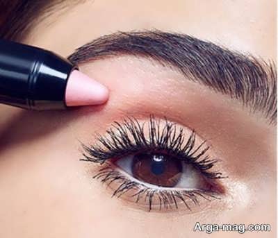 ۲. سایه صورتی صدفی را روی پلک بالایی تان بکشید. توجه داشته باشید که سایه را باید به صورت یکنواخت روی پلک ها پخش نمایید.
