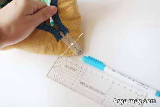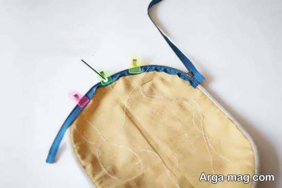 ۲ طرف نوار را به یکدیگر دوخته و سمت دیگر کیف را بر روی سطح کیف قرار دهید.