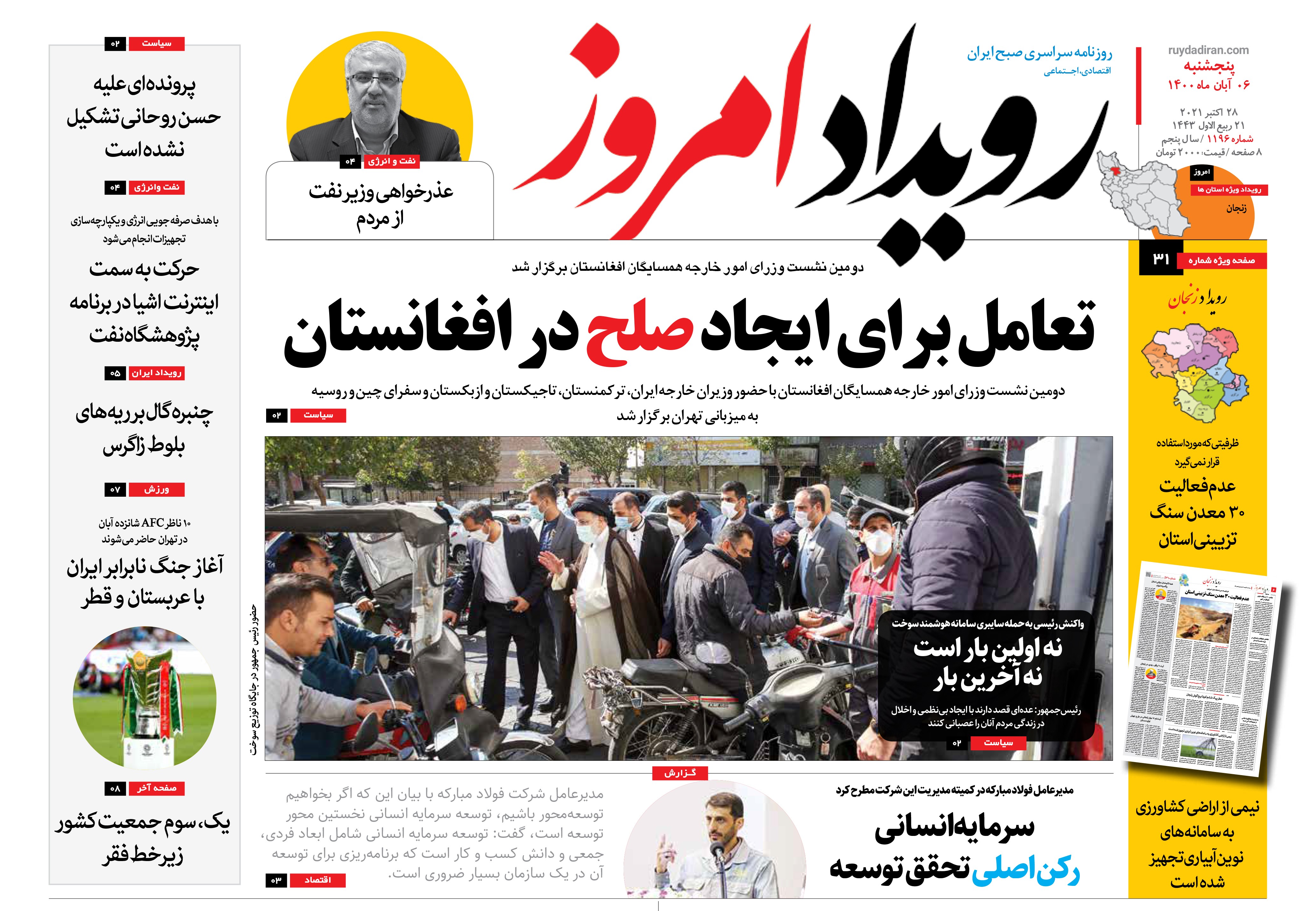 کد: 95517 | 06 آبان 1400 ساعت 01:33 روزنامه رویداد امروز پنج شنبه ۶ آبان ۱۴۰۰ روزنامه رویداد امروز رویداد ایران اشتراک گذاری گزارش خطا × اشتراک گذاری مطلب: روزنامه رویداد امروز پنج شنبه ۶ آبان ۱۴۰۰ فیسبوک اینستاگرام تلگرام ایکس (توییتر) ایتا بله روبیکا × گزارش خطا برای گزارش خطا با پست الکترونیکی: ruydadiran[at]gmail.com در ارتباط باشید
