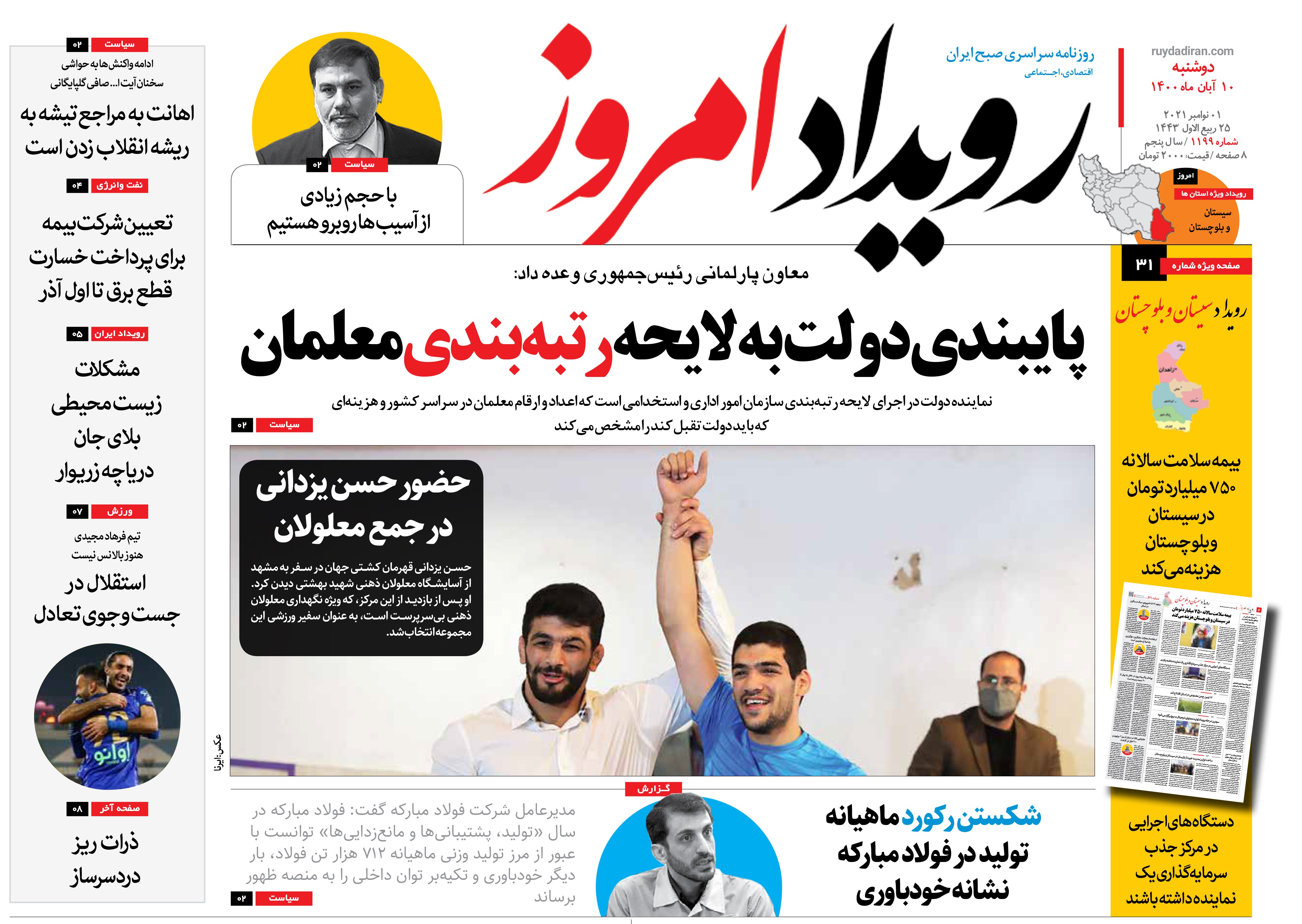 روزنامه رویداد امروز دوشنبه ۱۰آبان ۱۴۰۰