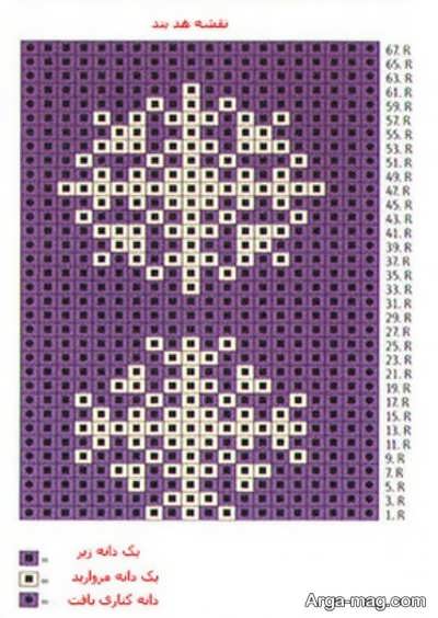 برای بافت هدبند به این روش ابتدا باید ۲۰ دانه سر بیندازید سپس ۲ خط رکن ببافید و مطابق با نقشه بافتن مرواریدها را شروع کنید و بافتن هدبند را با تکرار بافت ها ادامه دهید تا بافت شما به ۵۰ سانت برسد سپس دانه ها را کور کنید و درز هدبند را هم بدوزید.