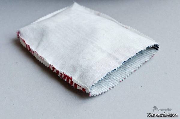 دو لایه را به ترتیبی که می بینید روی هم می گذارید و دور تا دور لبه را دوخت میکنید