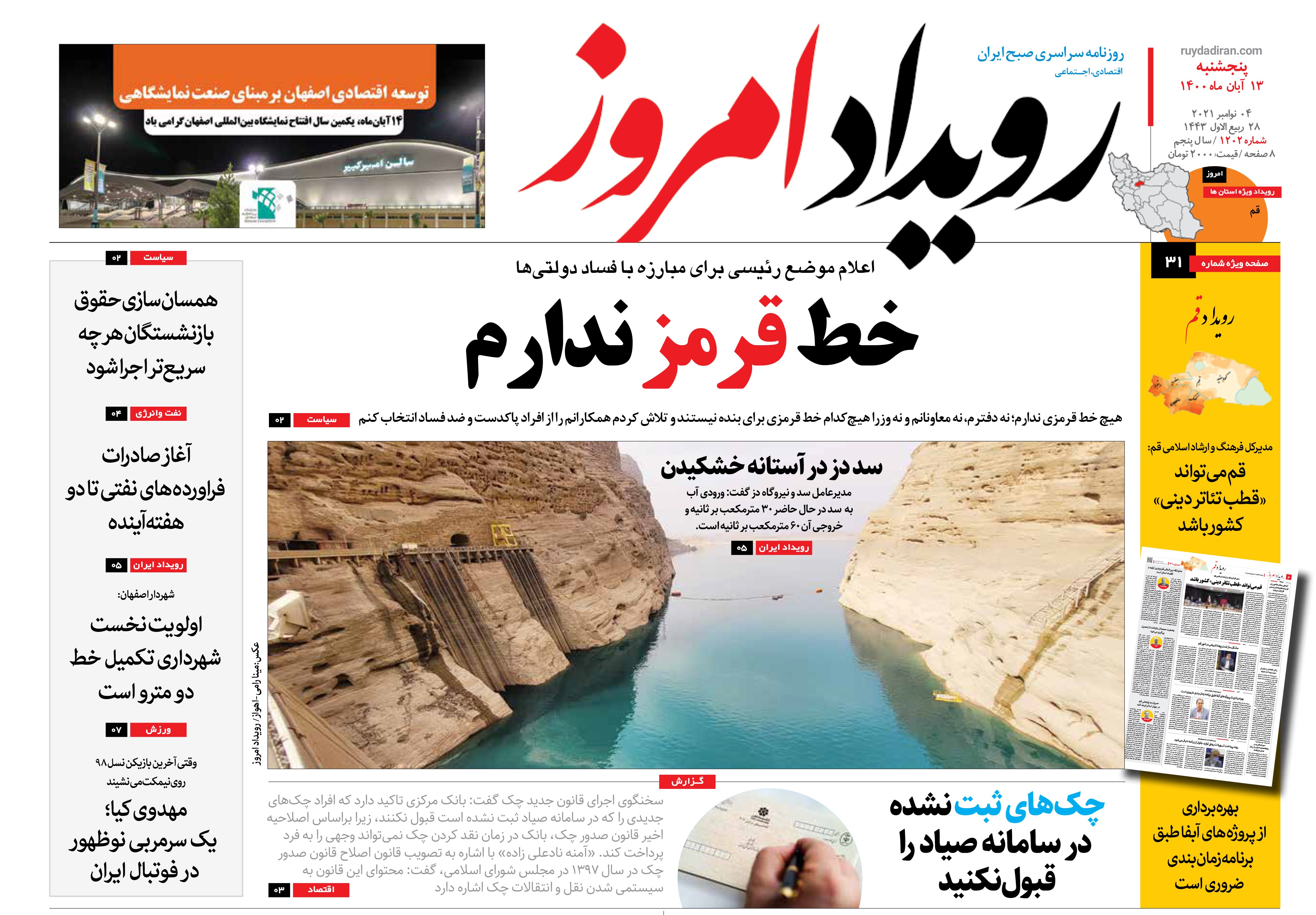 روزنامه رویداد امروز پنج شنبه ۱۳ آبان ۱۴۰۰