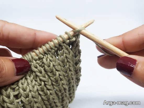 سپس در مرحله ی بعدی دانه ی بافته شده را از روی میل طرف راست بر روی میل اصلی انتقال داده و مجددا به روش قبل ۲ دانه را گرفته و از زیر می بافید.