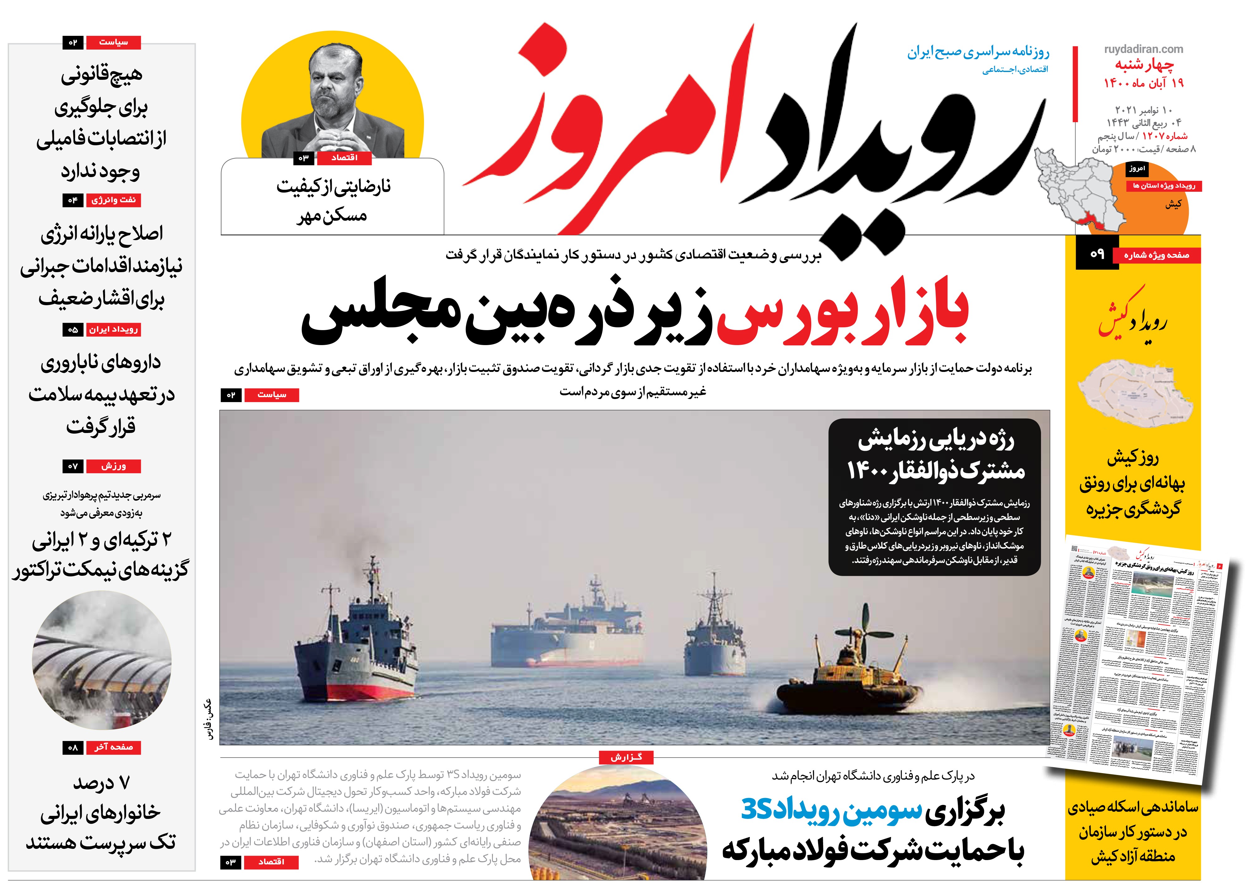روزنامه رویداد امروز چهارشنبه ۱۹آبان ۱۴۰۰