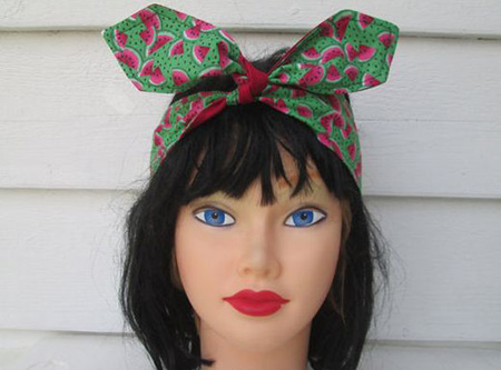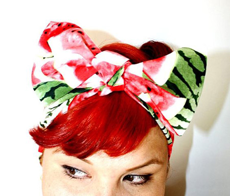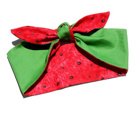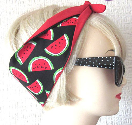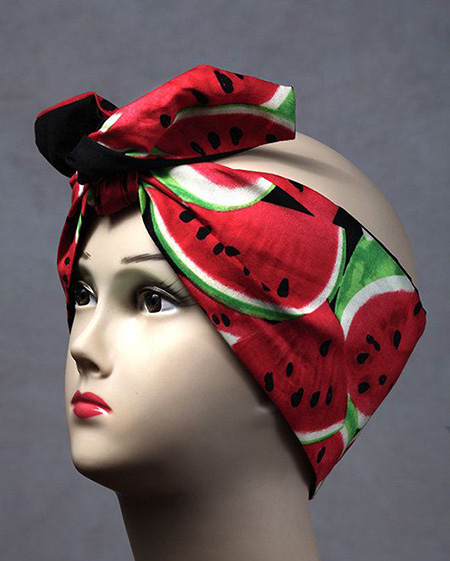 علاوه بر پوشیدن لباس با تم های شب یلدا، می توانید از گیر، کفش، جوراب، دستمال سر و ... می توانید استفاده کنید. در ادامه دستمال سرهایی با طرح هندوانه را برای شما آورده ایم.