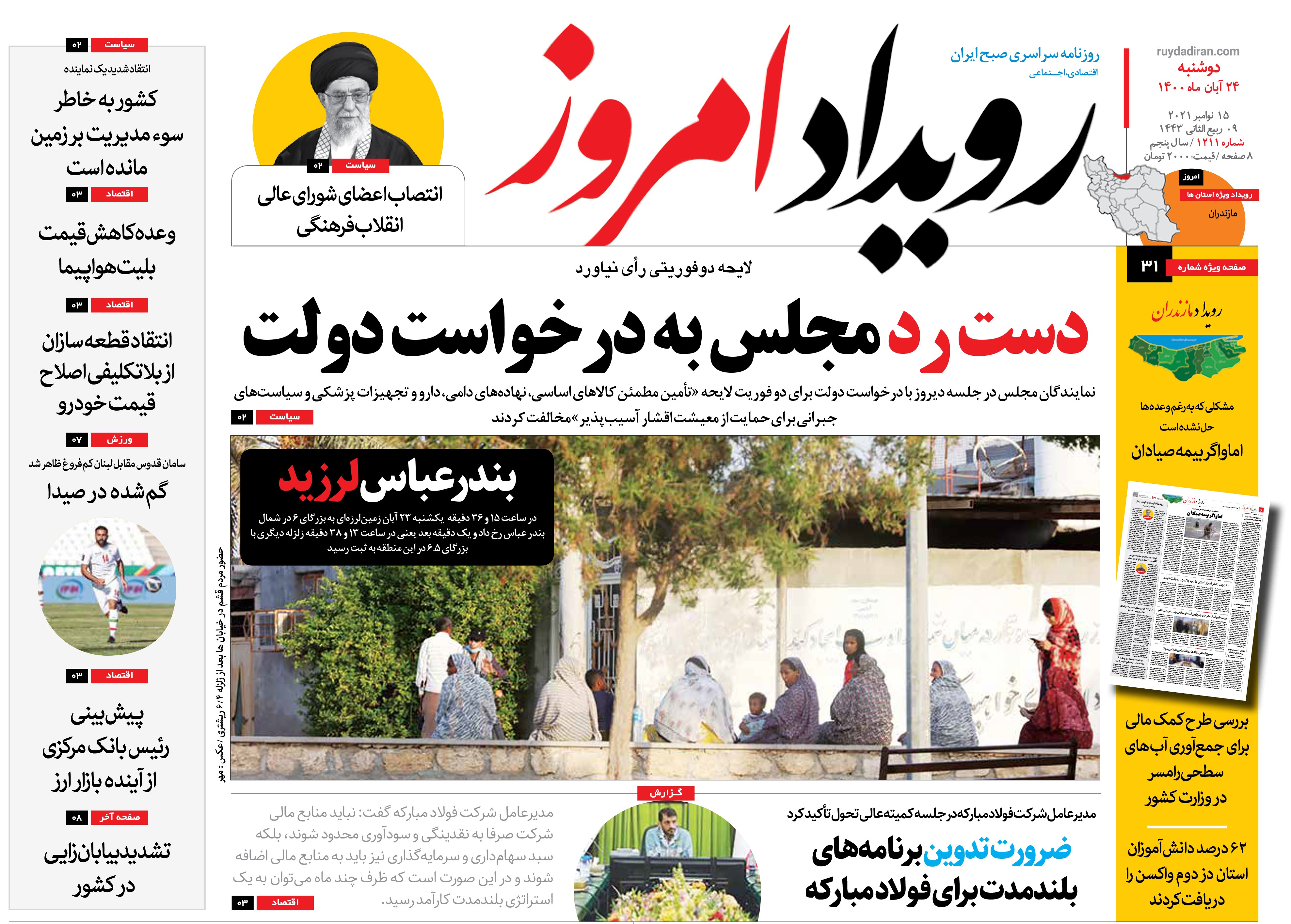 روزنامه رویداد امروز دوشنبه ۲۴آبان ۱۴۰۰