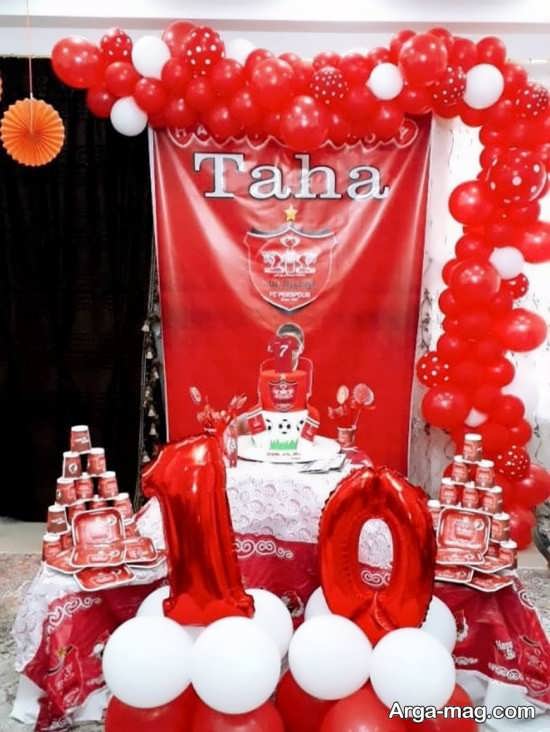 در کشورمان ایران طرفداری از یکی از دو تیم فوتبال باشگاهی پایتخت از گذشته وجود داشته و همواره از تب و تاب زیادی در بین مردم برخوردار است. تیم فوتبال پرسپولیس، یکی از این دو تیم محبوب می باشد که طرفداران بی شماری در سراسر ایران دارد. بسیاری از افراد دوست دارند، علاقمندی خود به تیم محبوبشان را به شیوه های مختلفی بروز دهند، از این رو بسیاری، در جشن تولد های خود از تزیینات تولد پرسپولیسی استفاده می کنند. در ادامه می توانید نمونه های زیبایی از تم تولد قرمز با پرچم این تیم را که می توانند گزینه مناسبی برای انواع تم تولد پسرانه و دخترانه باشند، مشاهده کرده و لذت ببرید.