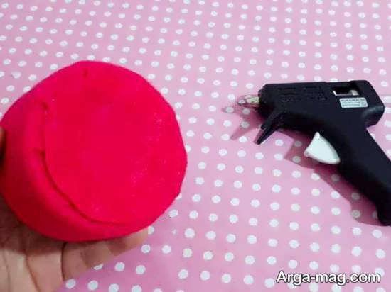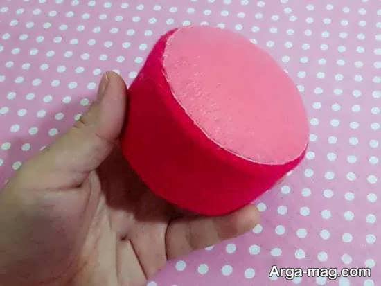 ۲ دایره دیگر نیز از نمد برابر با دایره درب قوطی برش بزنید، دایره ها را از نمدهای با رنگ های متمایز برش بزنید.