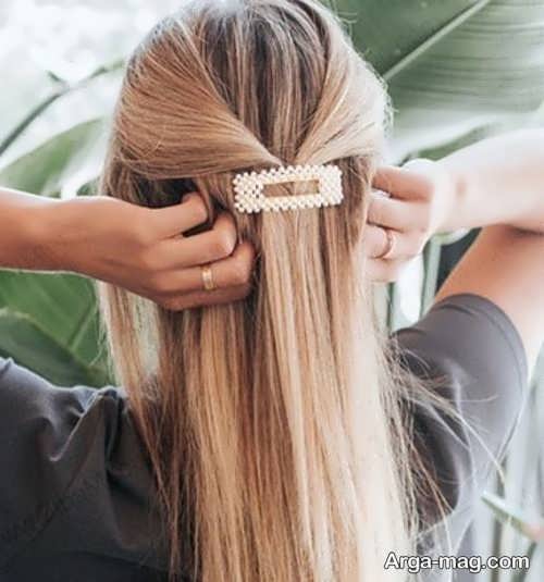 موها را می توانید با کمک بابلیس و اتوی مو و سشوار و کراتینه مو و … برای مجالس و مهمانی ها صاف کنید سپس از وسایل تزیین کننده مو برای جذابیت بیشتر موهای خود استفاده کنید. برای جذابیت بیشتر موهای صاف همچنین می توانید از بافت موهای تزیینی در قسمتی از موها استفاده کنید.