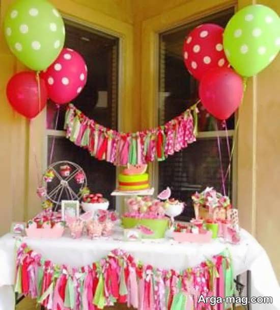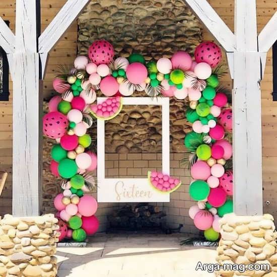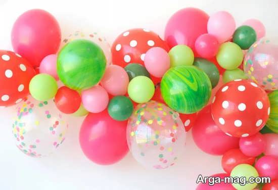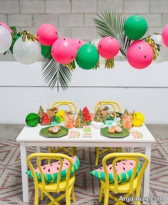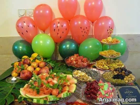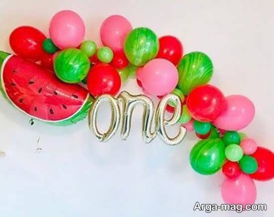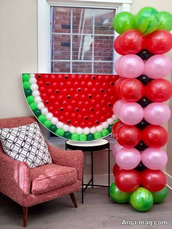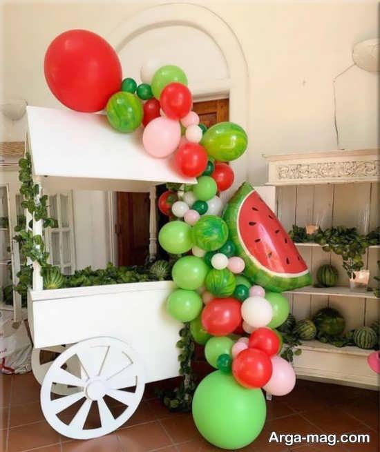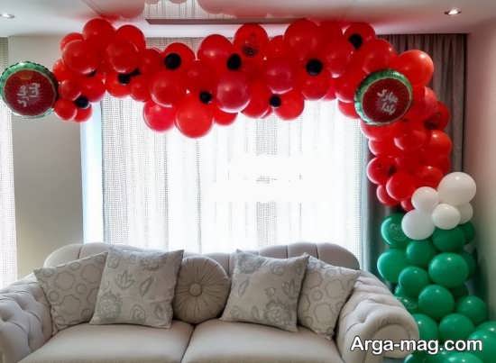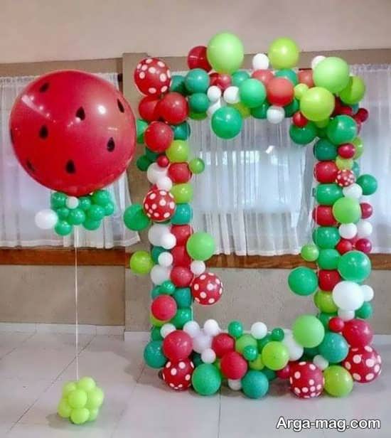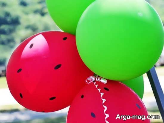 حال در صورتی قصد دارید جشن تولد عزیزانتان را در شب یلدا برگزار نمایید، ایده های جذاب بسیاری وجود دارد که به کارگیری آنها تاثیر زیادی در زیبایی و جذابیت جشن شما خواهد داشت؛ برای تزیینات بادکنک جشن تولد یلدایی می توانید از ستون ها یا آویز های بادکنکی با رنگ های صورتی، سبز و قرمز با خال های سیاه بهره گیرید، ضمن اینکه استفاده از بادکنک های هلیومی و فویلی هندوانه و یا آرایش بادکنک های ساده در کنار برگ های سوزنی سبز ترکیب جذابی ایجاد خواهد کرد. در اینجا می توانید انواع مدل های بادکنک آرایی شب یلدا به شیوه های خلاقانه و زیبا را مشاهده کنید.