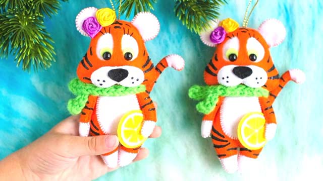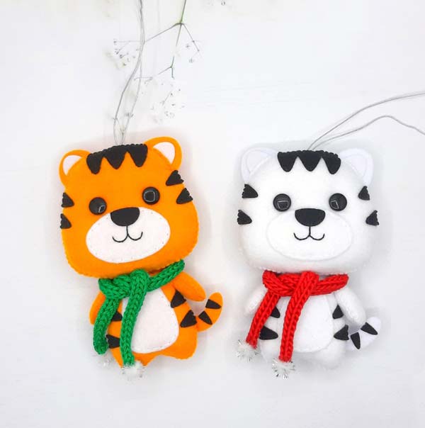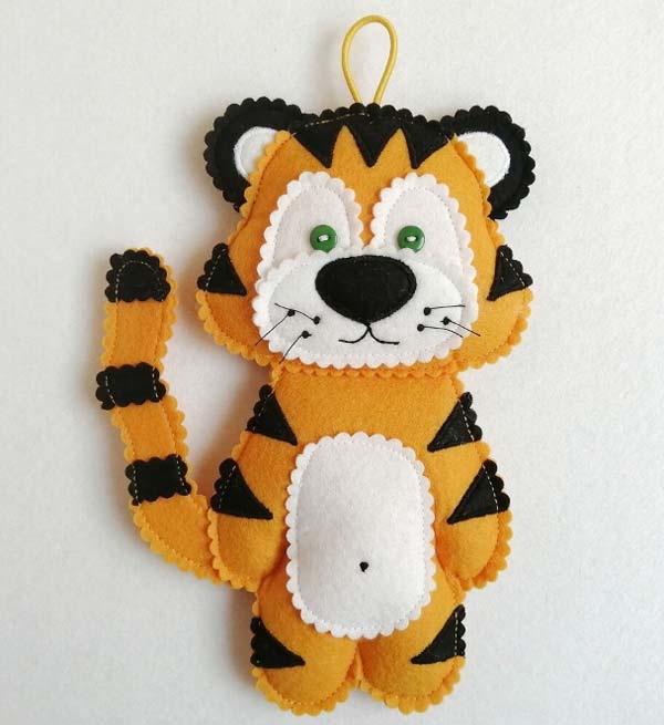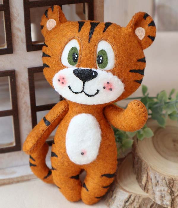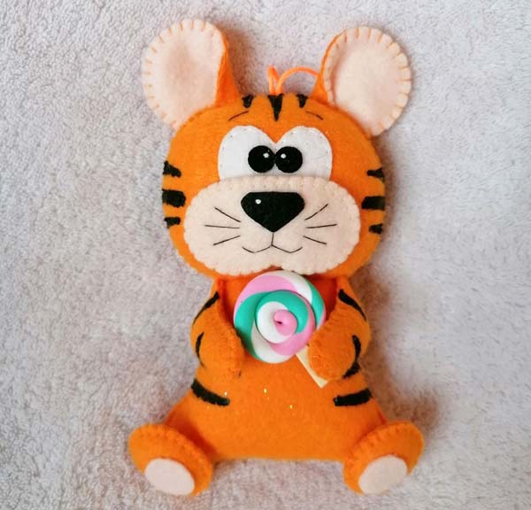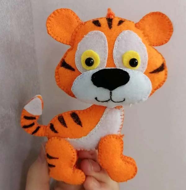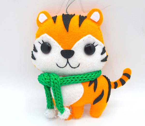 تزیین این عروسک نمدی ببر سلیقه ای است.