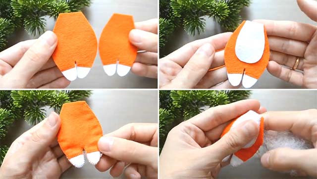 یک لایه گوش سفید و یک لایه گوش نارنجی را روی هم گذاشته و بدوزید.