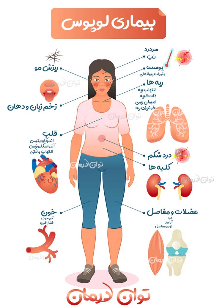 التهاب دیده شده در لوپوس می تواند بر روی ارگان ها و بافت های مختلف بدن از جمله موارد زیر تأثیر بگذارد: